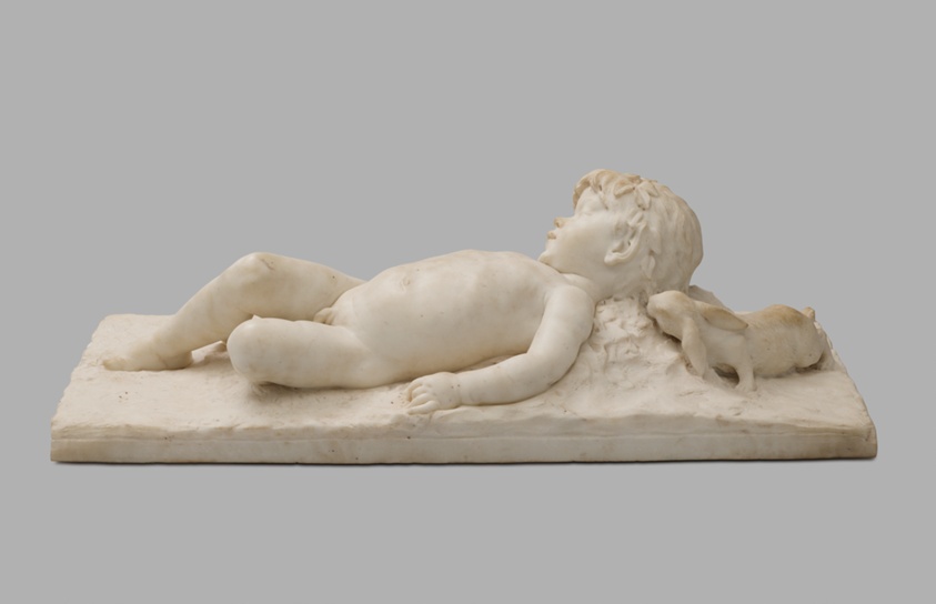 Sleeping Infant Faun Visited by an Inquisitive Rabbit (1887–89) by Edward Clark Potter. Marble.