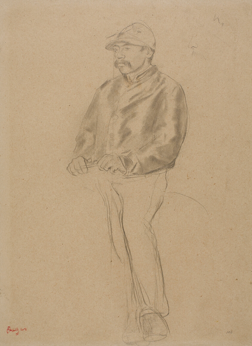 Jockey (1866–68) by Hilaire Germain Edgar Degas. Graphite with stumping on tan wove paper.