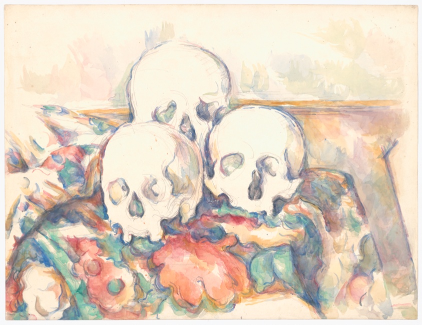 The Three Skulls (1902/06) by Paul Cezanne. Watercolor, with graphite, on ivory wove paper.