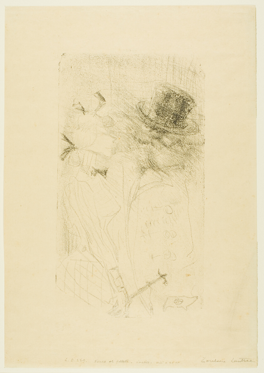 Lithograph (crayon with scraper) in olive-green on cream wove paper hinged at top corners to gray-brown wove paper, 1898